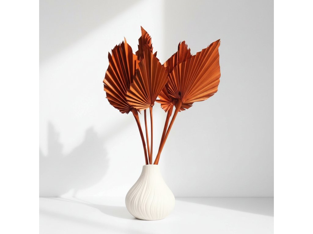 Terracotta odstín skvěle ladí s přírodními materiály i dalšími teplými barvami, díky čemuž je ideální pro rustikální, boho i moderní aranžmá. Palm Spear je perfektní volbou pro kytice, věnce i originální interiérové doplňky, které chtějí zaujmout svou strukturou a barvou.
