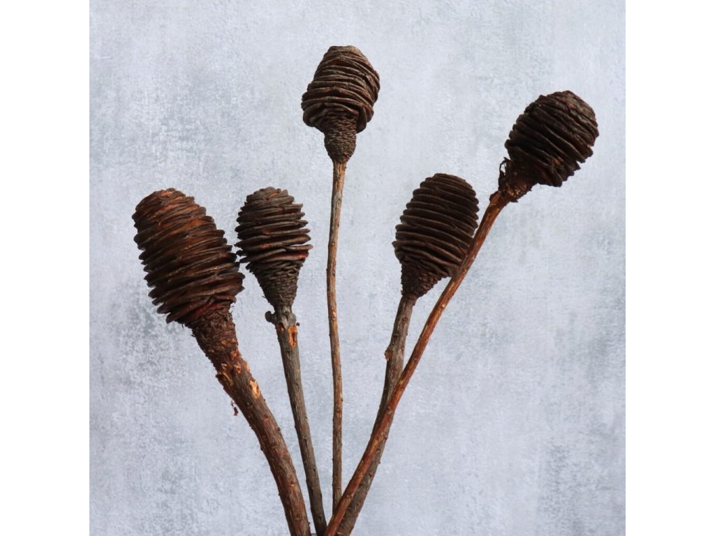 Sušený Platyspernum v přirozeném odstínu přináší do interiéru jemnou přírodní krásu a texturu. Jeho zajímavě tvarovaný květ a přirozená barva se skvěle hodí do rustikálních, boho i moderních dekorací. Vynikne samostatně ve váze i jako součást sušených vazeb či věnců.