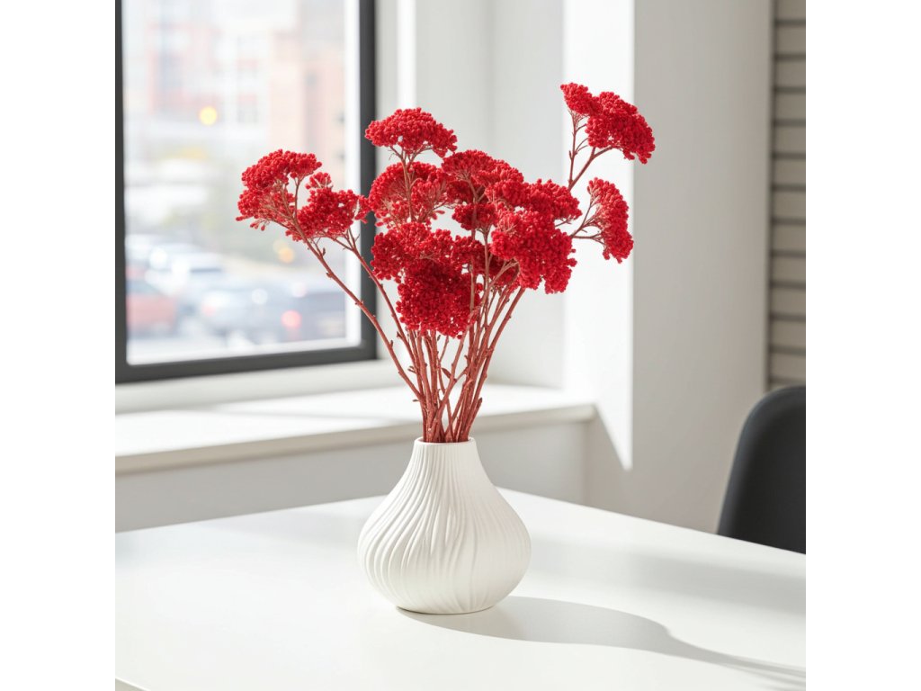 Sušená achillea v odstínu rosa/natur přináší do aranžmá něhu a přirozenou krásu. Její jemné květy působí vzdušně a lehce, díky čemuž se dekorace stávají romantické a harmonické, aniž by ztrácely přírodní charakter. Tento odstín je ideální pro kombinaci s dalšími neutrálními sušenými květinami nebo travinami, kdy vytváří jemný, ale sofistikovaný akcent.