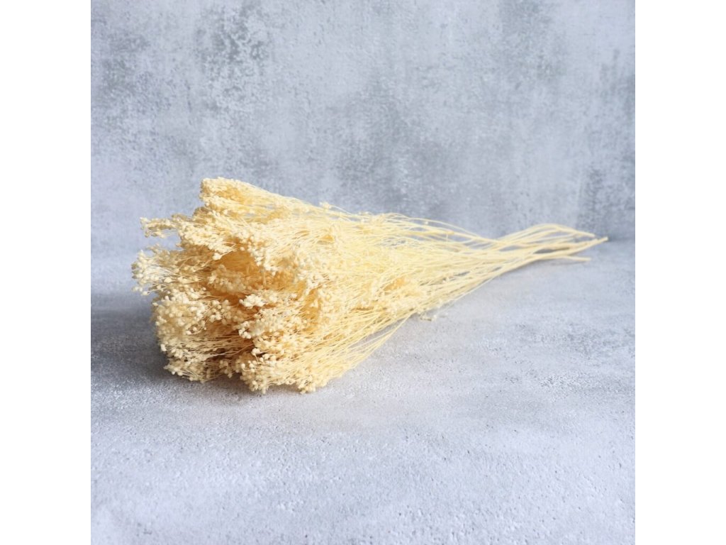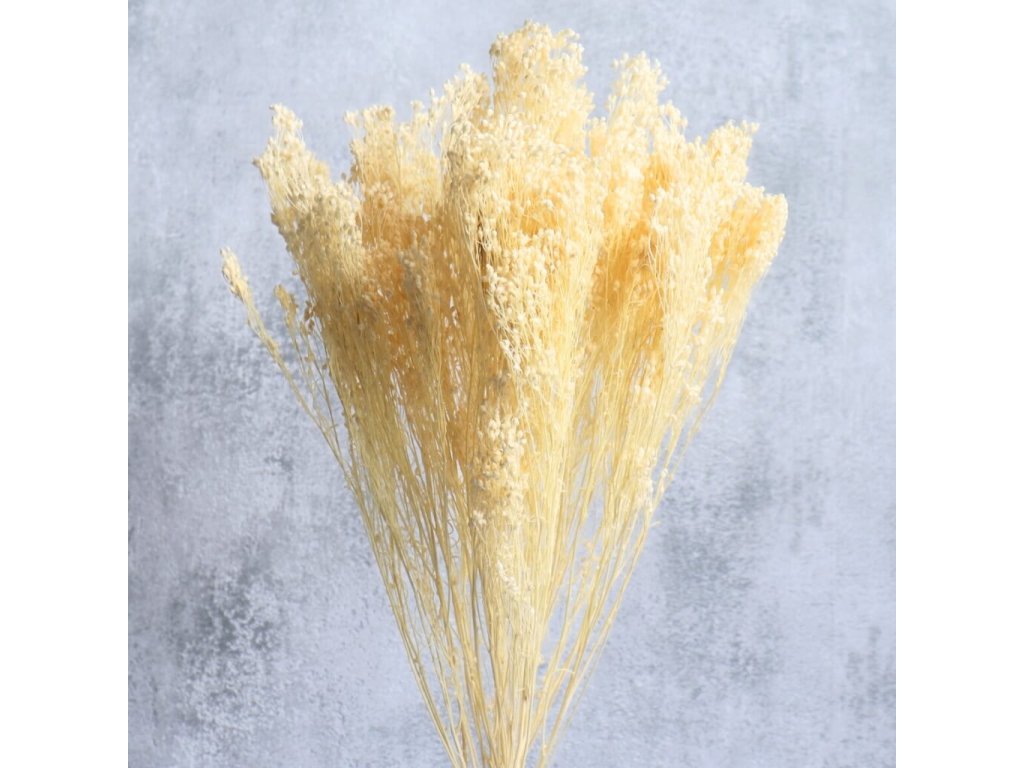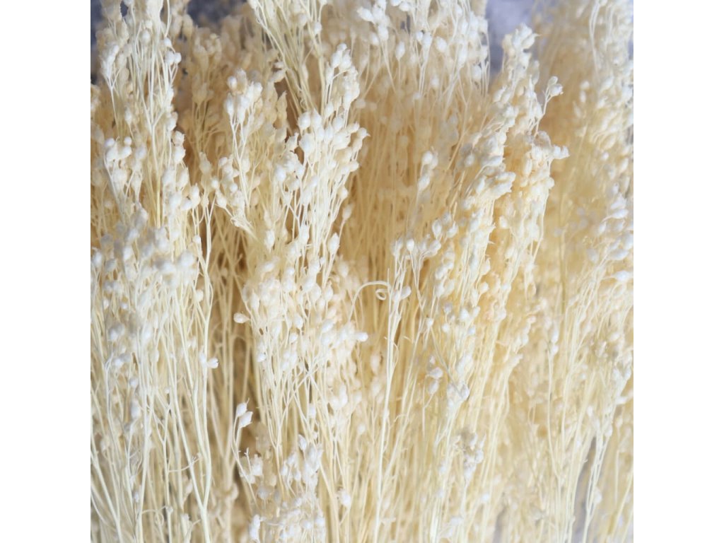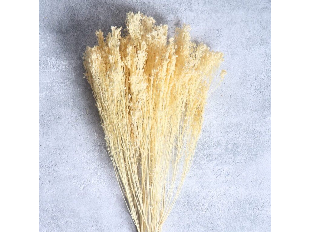 Sušený Broom Bloom v jemném běleném odstínu představuje čistý a elegantní prvek pro vaše přírodní aranžmá. Jeho nadýchaná a vzdušná struktura přináší do dekorací jemnost a zajímavou texturu, která ozvláštní každý interiér.