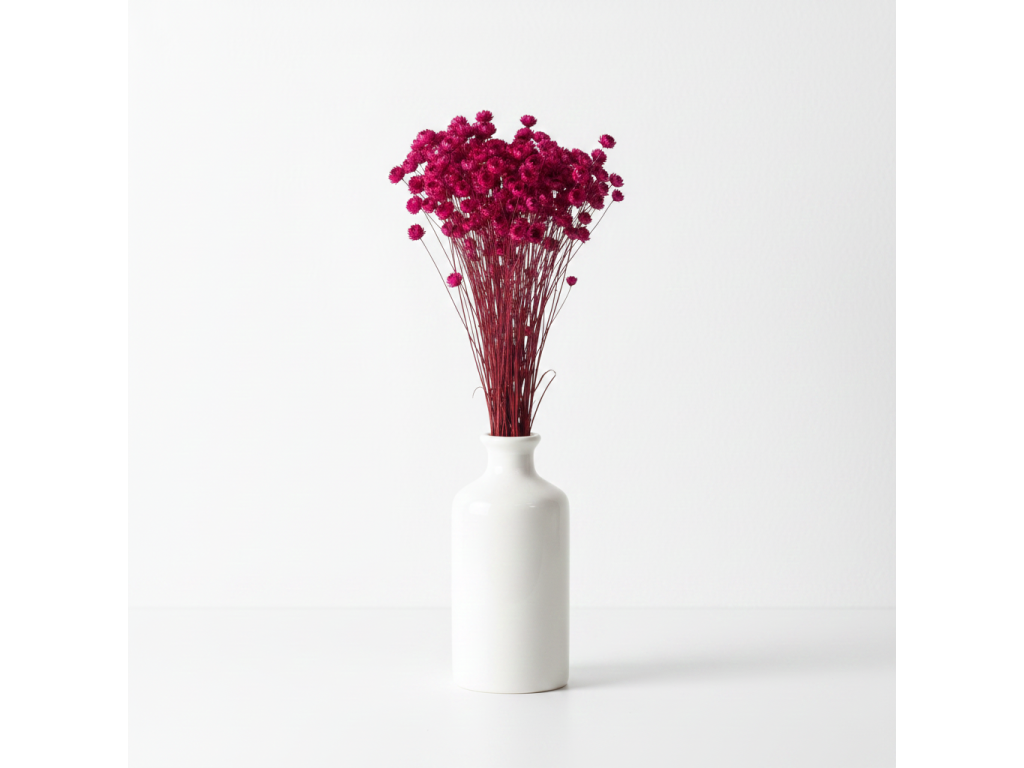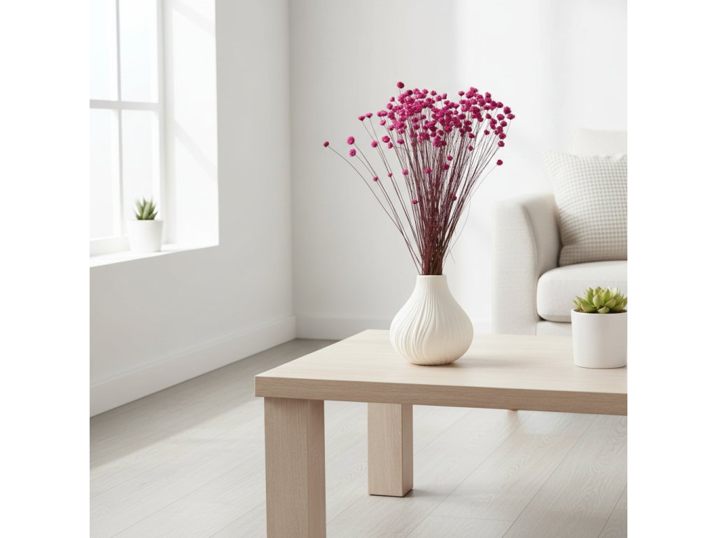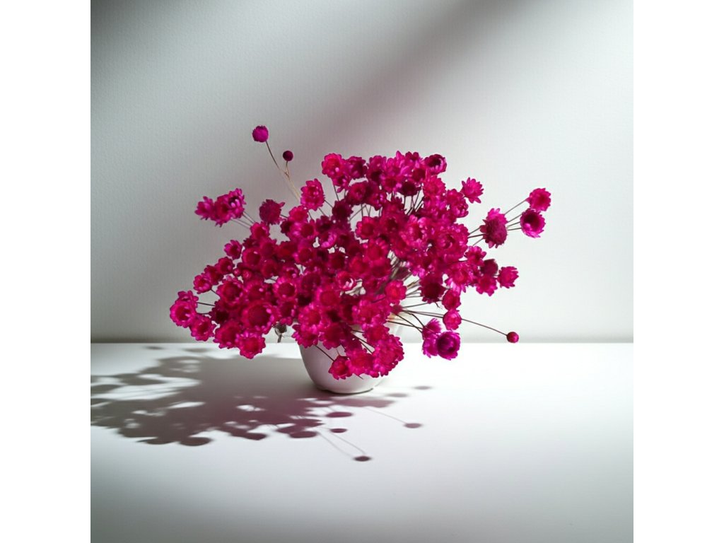 Tento odstín je ideální pro romantické i moderní kompozice – krásně ladí s přírodními tóny, béžovou i tlumenými pastelovými barvami. Glixia se hodí do kytic, dekorací do vázy i věnců a funguje jako jemný doplněk i jako barevný prvek, který přirozeně upoutá pozornost. Díky sušené úpravě si zachovává svůj tvar i barvu po dlouhou dobu bez nutnosti péče.
