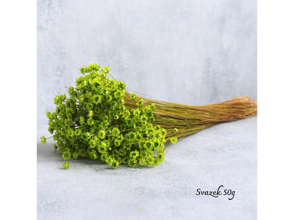 Sušená Glixia ve světle zeleném odstínu je elegantním a přirozeným doplňkem pro květinová aranžmá i dekorace. Drobné kvítky a jemná barva dodávají kompozicím lehkost, svěžest a harmonii. Skvěle se hodí do svatebních kytic, věnců, stolních aranžmá i minimalistických přírodních dekorací.