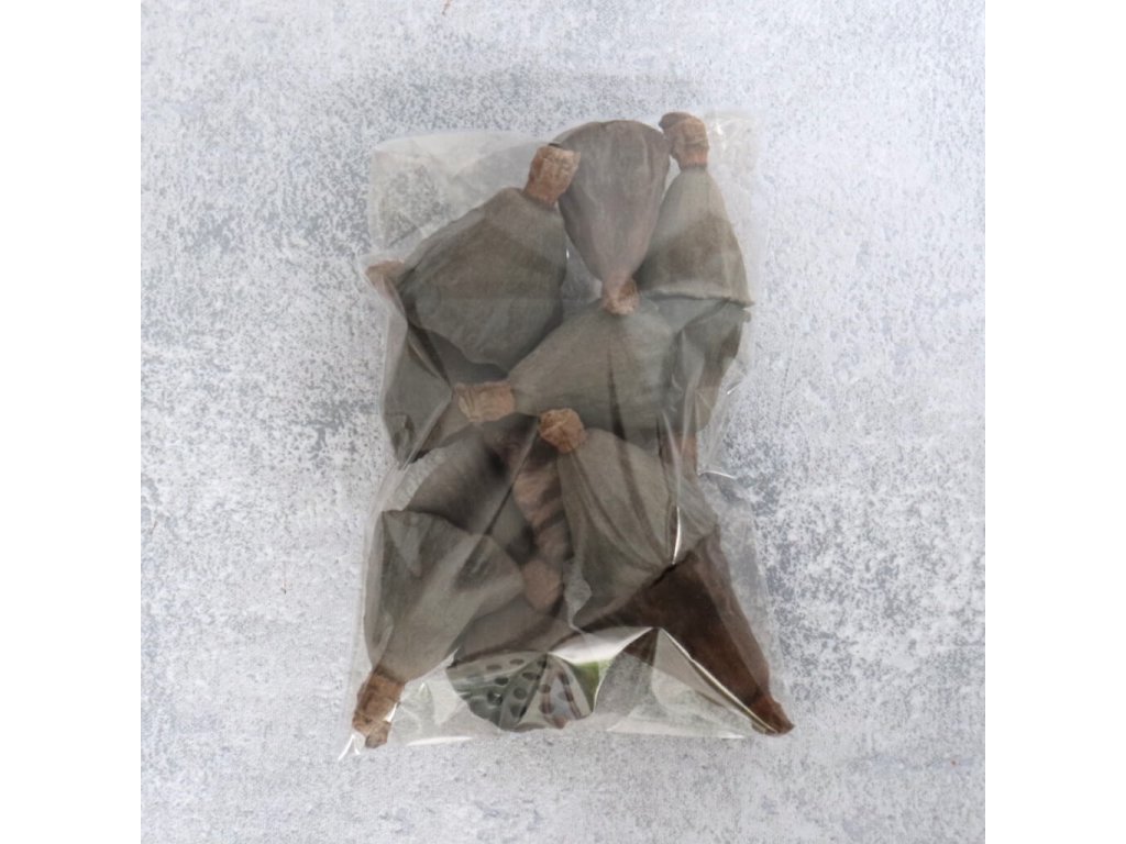 Mini lotosové tobolky v přírodním provedení jsou oblíbeným dekoračním prvkem pro aranžování věnců, kytic i designových dekorací. Svým originálním tvarem dodávají aranžmá strukturu a přirozený, exotický vzhled. Každý kus je jedinečný, což podtrhuje autentickou krásu přírodního materiálu.