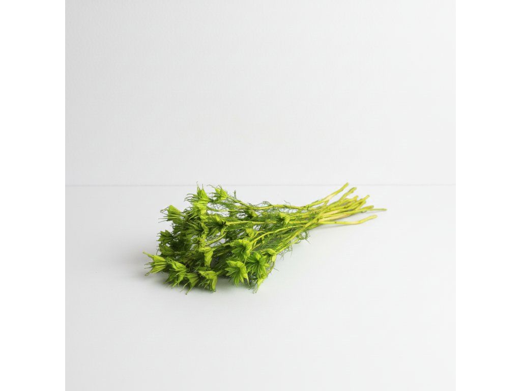 Nigella v zelené barvě je univerzální prvek, který využijete jako jemný doplněk i výraznější tvarový detail. Hodí se do moderních, přírodních i rustikálních aranžmá, kytic, věnců i dekorací do vázy.