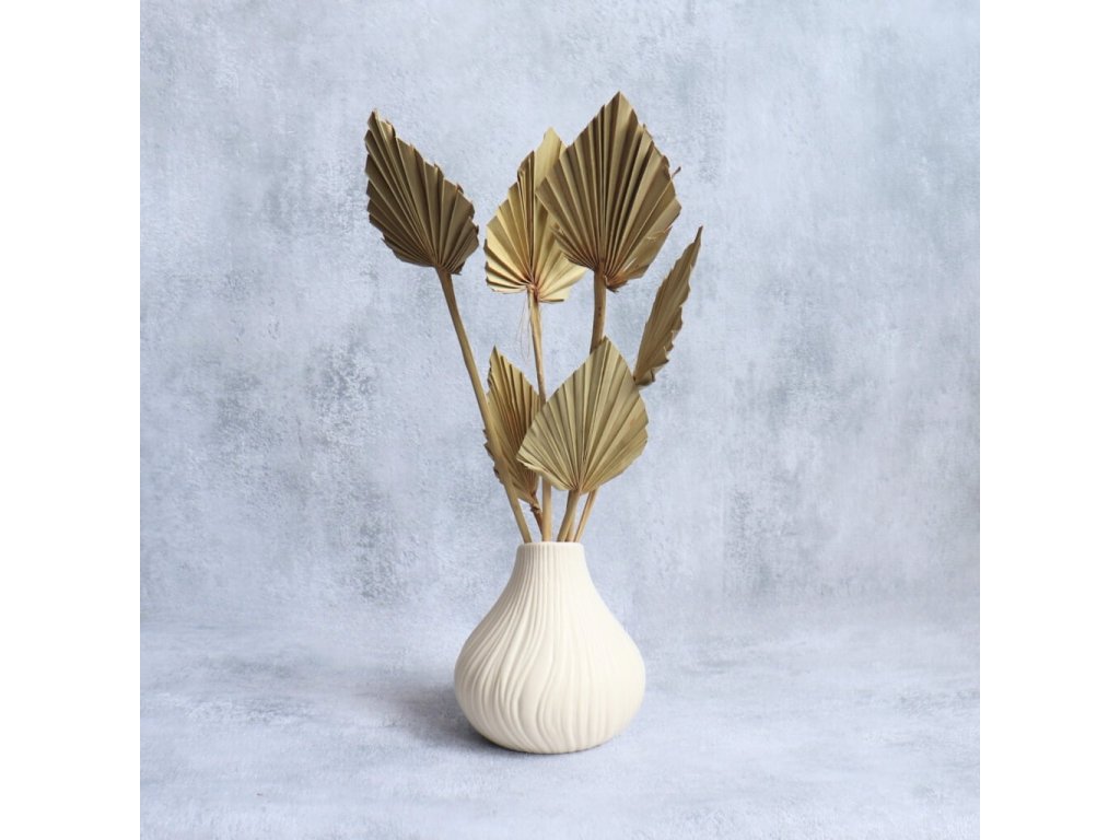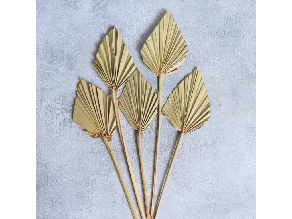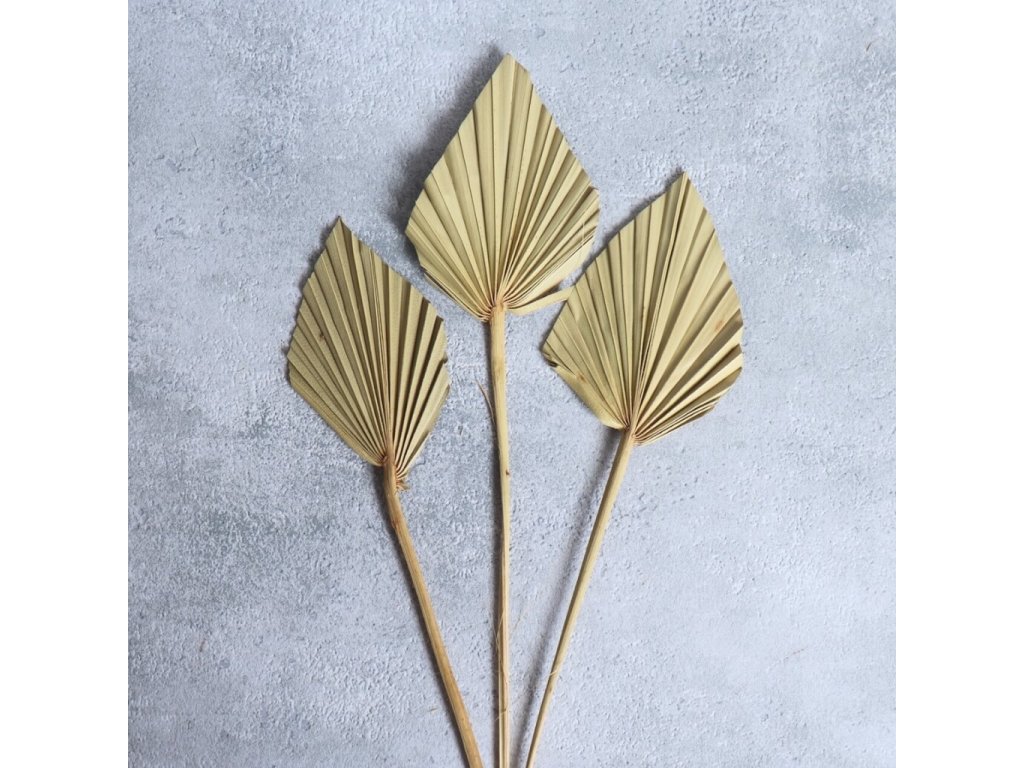Miniaturní sušené palmové listy Palm Spear v přírodním odstínu dodají vašim aranžmá jemný exotický nádech a nadčasovou přírodní krásu. Díky menší velikosti jsou ideální pro detailnější kompozice, svatební výzdobu nebo jako stylový akcent do vázy. Typický vějířovitý tvar listu přináší strukturu a zajímavý vizuální kontrast v kombinaci s dalšími sušenými květinami, jako jsou Lagurus, Phalaris nebo Protea. Skvěle zapadnou do boho, moderních i rustikálních dekorací.