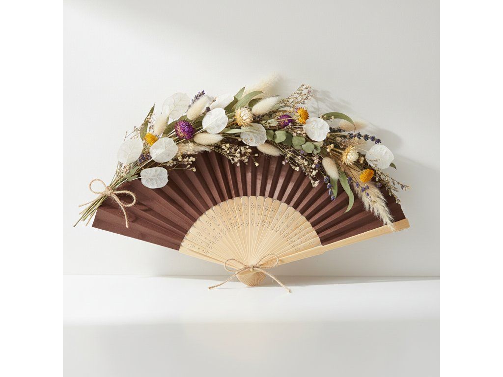 Můžete jej dozdobit sušenými květinami, travinami, stuhami nebo jutou a vytvořit tak originální aranžmá v boho či rustikálním stylu. Vějíř krásně vynikne jako dekorace na zeď, doplněk slavnostní výzdoby nebo součást svatebních a sezónních aranžmá.