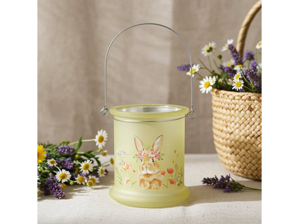 Žlutá skleněná lucerna Piccolo s jemným motivem zajíčka a lučních květin je perfektním doplňkem pro vytvoření sváteční velikonoční nálady ve vašem domově. Její teplé, tlumené světlo navodí pocit radosti a veselí spojený s jarními svátky.