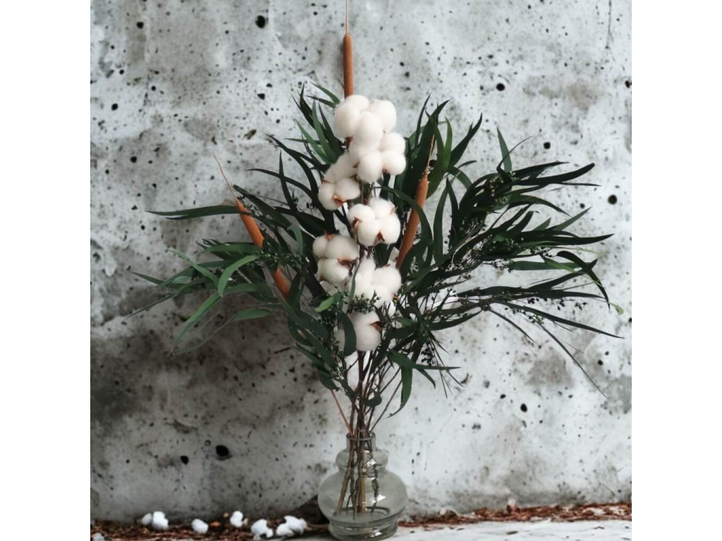Dekorační větvička bavlníku je krásným přírodním doplňkem, který zaujme svou jemností a nadýchanými bavlněnými hlavičkami. Větvička má na stonku 8 hlaviček a délku přibližně 50 cm, takže je připravená k okamžitému naaranžování do vázy.