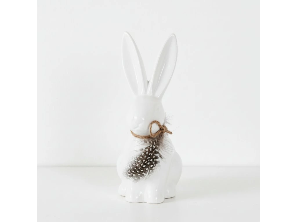 Zajíc porcelán/peří – 17 cm, bílý