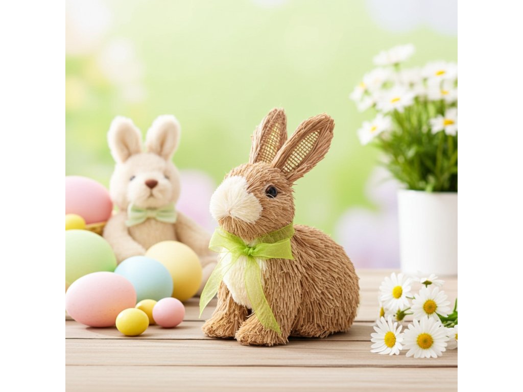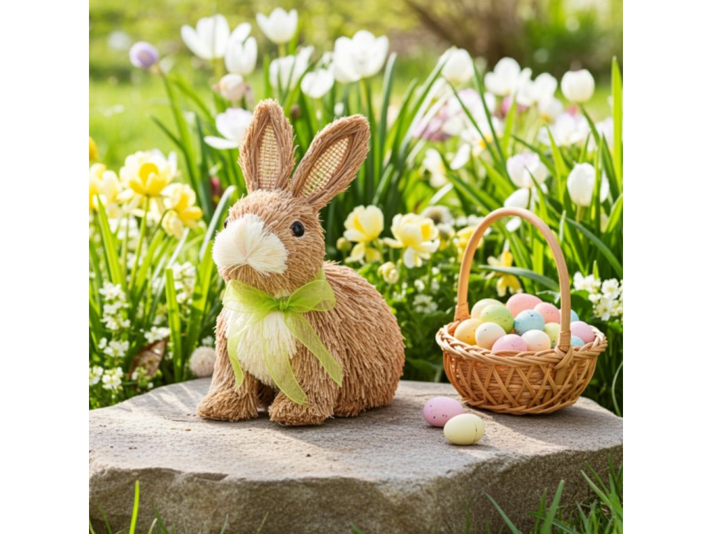 Zajíc je tradičním symbolem jara a Velikonoc a tato dekorace kombinuje nadčasový přírodní vzhled s jemným detailem, který rozzáří váš domov.